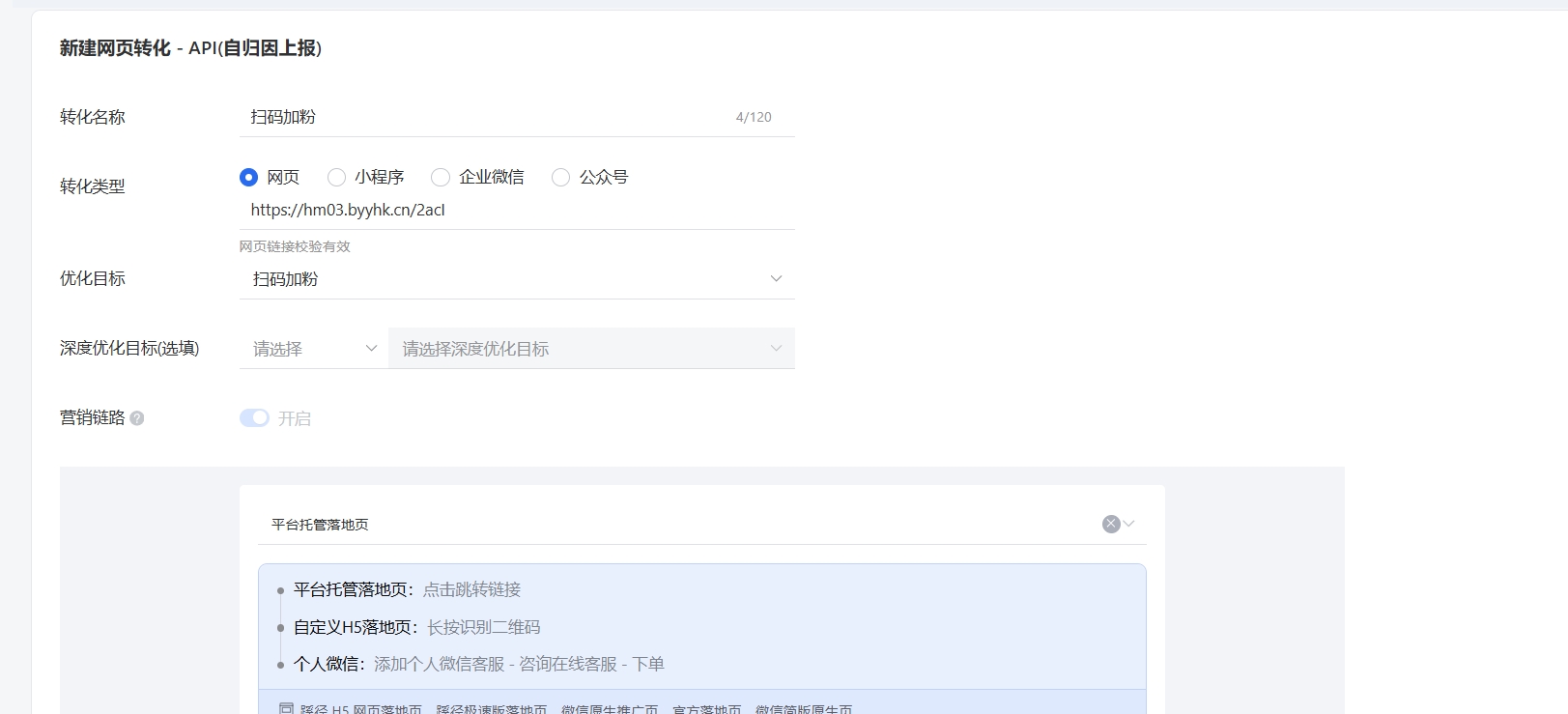 选择选择类型,这里以网页转化为例,【新建网页转化】