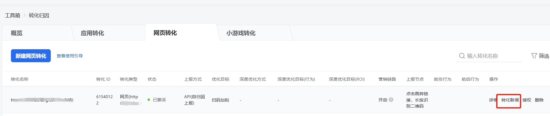 选择刚建好的网页转化,点击【转化联调】,然后使用QQ扫码联调即可