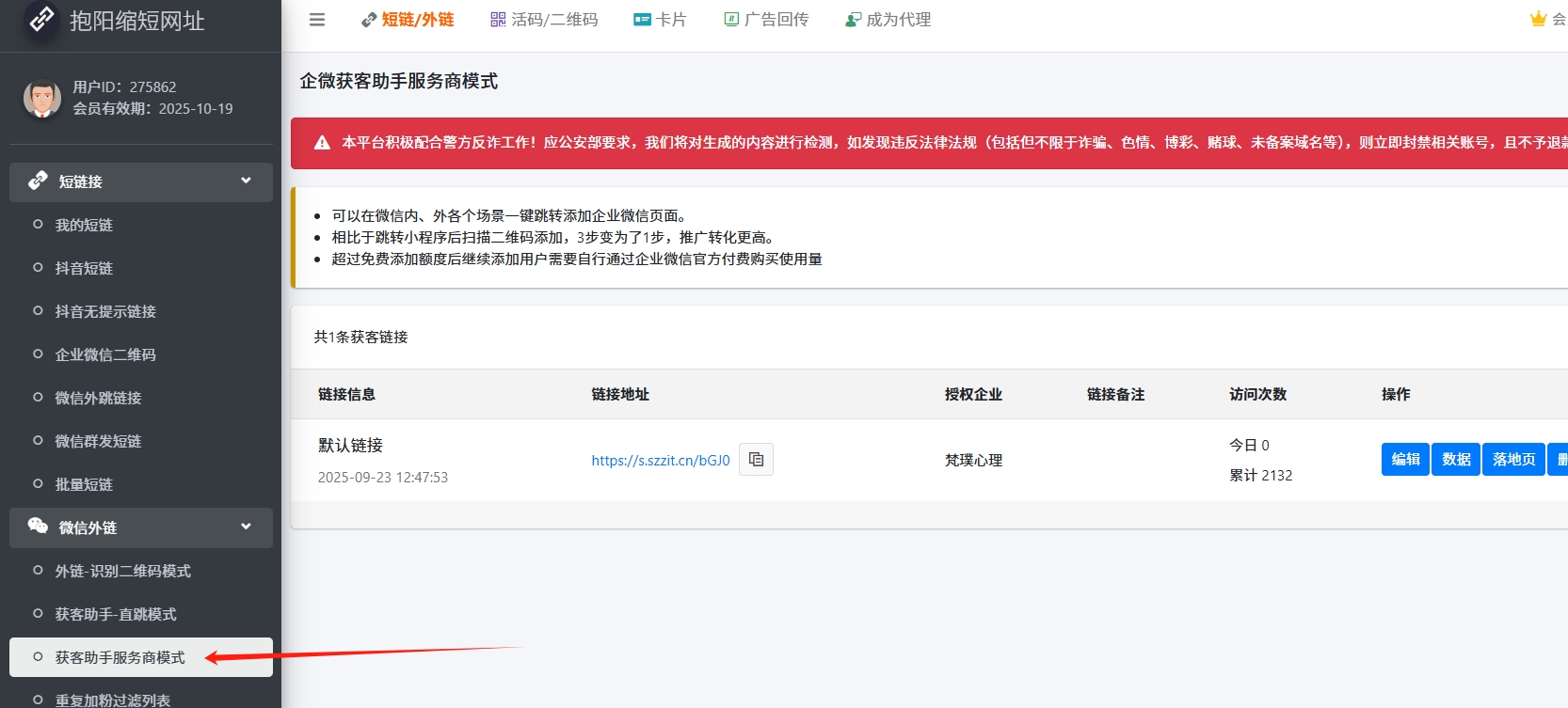 - 请确认该条获客链接是否已经删除,或者授权已经取消。